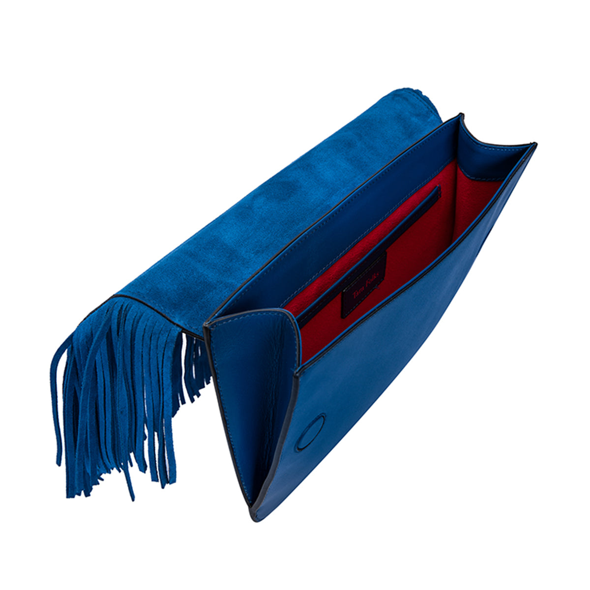 This statement bag blends luxury and playfulness, handcrafted in Istanbul from high-quality local leather in smooth or bold croco-embossed textures. Its sleek, rectangular shape is finished with flowing fringes, adding lively energy to your look. Designed to carry your essentials, it can be worn as a clutch or hands-free with a detachable, leather-studded shoulder strap.