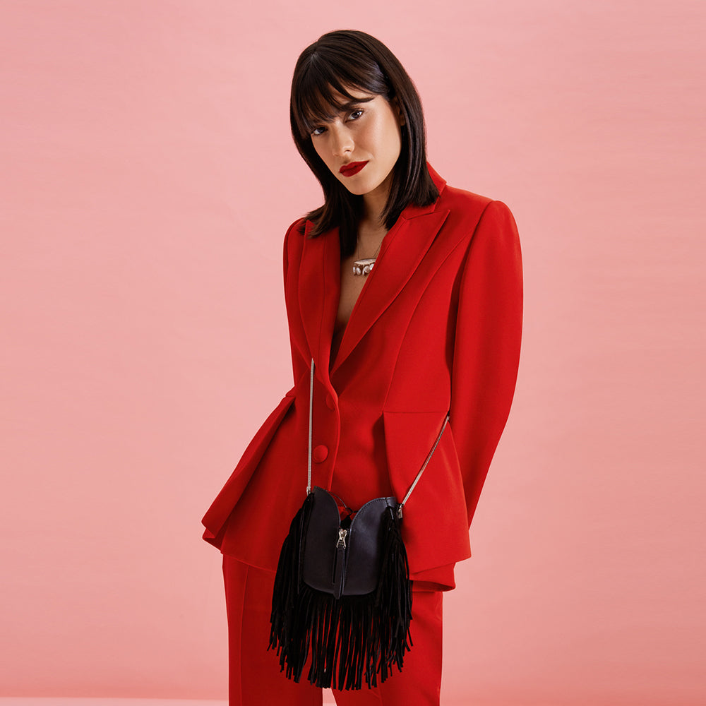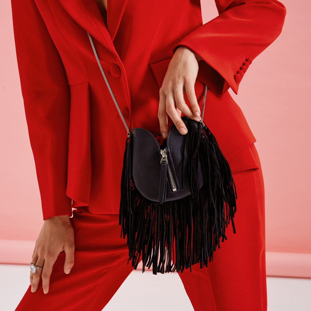 Crafted from high-quality, locally sourced leather and detailed with suede fringing for a playful touch, this tulip-shaped, structured design is paired with an elegant chain strap that gracefully drapes over your shoulder. Perfect for a night out, slip your cardholder and lipstick inside, and you're ready to turn heads with effortless style.