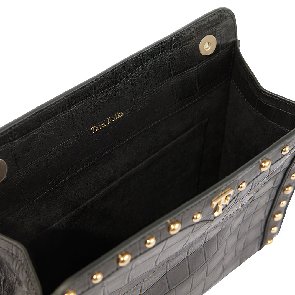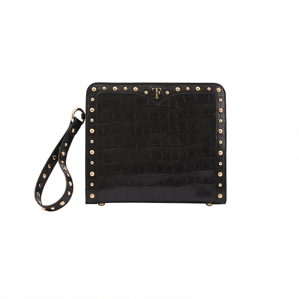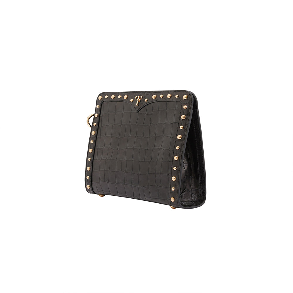 Crafted by skilled artisans, this standout clutch blends traditional Turkish fabrics with croc-embossed leather trims and golden studs, keeping your look effortlessly stylish from day to night!